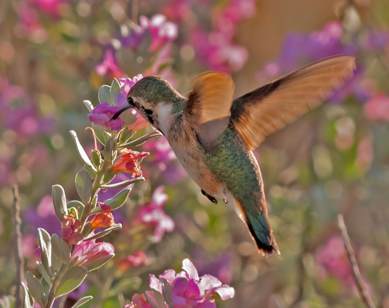 This guy showed up while I was shooting bees on the 2015 Davis Mountains trip. He was severely back-lit, but with some extreme Photoshopping I was able to end up with this image. My main hummingbird page is here.