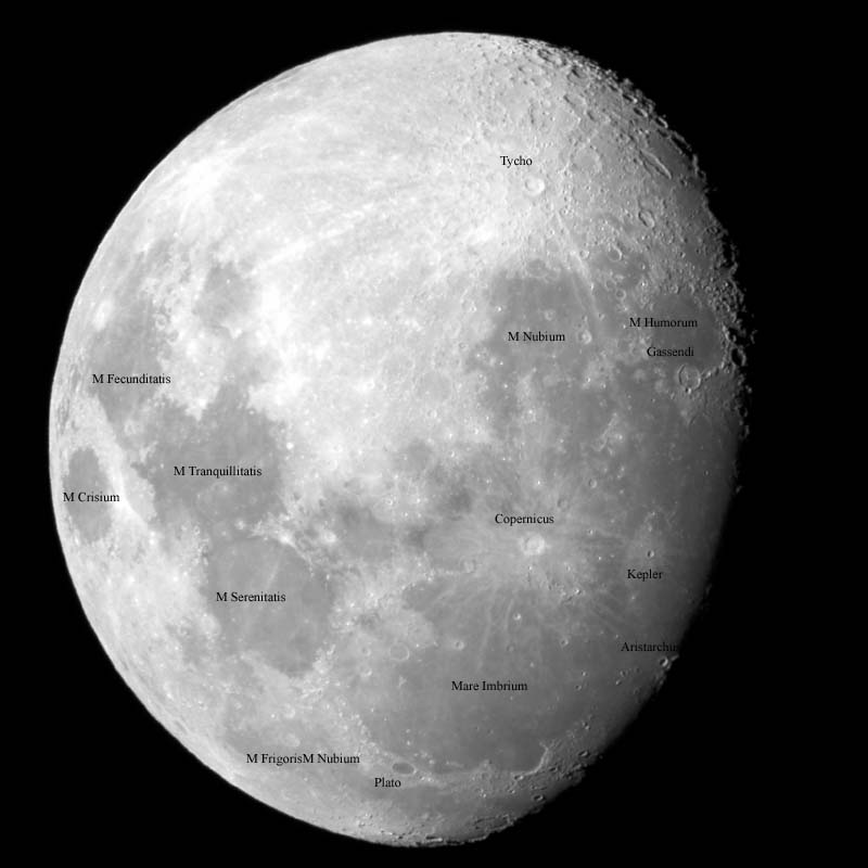 ![]() 11 day old moon labels | ![]() Gassendi, M Humorum Doppelmayer area. (11 day old moon) | ![]() Annotated 13 days 14 hr. Moon. |